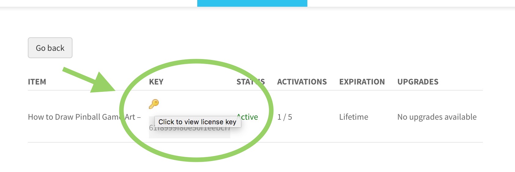 Click on the Key Icon to see your License.